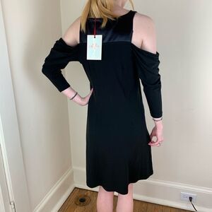 Leona Edmiston Jess Wool Knit and Satin LBD Sz 8 NWT. Super soft and comfortable wool and Lycra body, accented with a luxurious satin top. Long sleeved cold-shoulder evening dress lets you be sexy and warm at the same time. Let Leona Edmiston Jess long-Sleeved cold shoulder LBD take you to all your parties and semi formal events. Australia 2 translates to US 8 according to their website, but also check measurements. Please see photos for additional details. Pit to pit 16”, Waist 30”,Length 36”