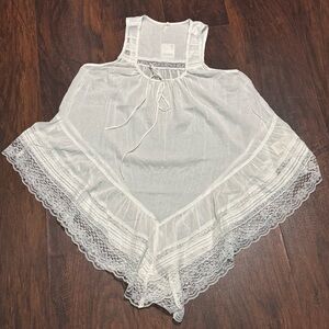 Free People Coretta Tunic Cream White Sheer Lace Trimmed Top Small NWT