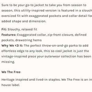 Free People Surplus Future Parka In Olive Night Size Small NWT