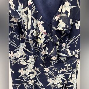 Lulu's Navy Floral Mini Chiffon Dress With a Ruffle V-Neck Size M
