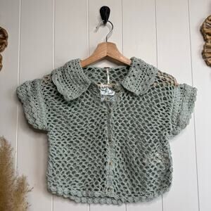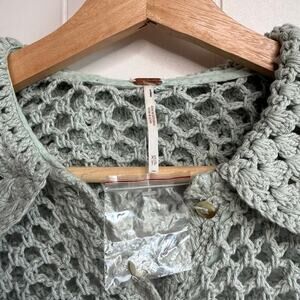 Free People crochet top collard button-front knit cotton XS boho preppy