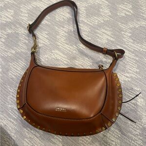 Chic Isabel Marant shoulder bag. Tan leather with gold stud accents. Perfect for stylish outings.