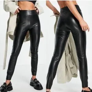 Abercrombie & Fitch Black Faux Leather Pull On Leggings Size XS NWT