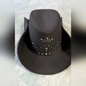 Black Jeans Studded, Light Weight, Women's Cowboy Hat With Side Snap Buttons.