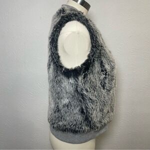 Three Dots Gray Faux Fur Vest Button Front Sleeveless Jacket Size Small S