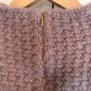 This beautiful Tory Burch sweater is in good, pre owned condition with no stains, holes or odors. Faint perfume scent may be present. It's been well cared for and in a smoke free home. It appears to have shrunk just a little. Otherwise it's a great sweater. It features neck and wrist cuff knit accents with a back of neck zip closure.