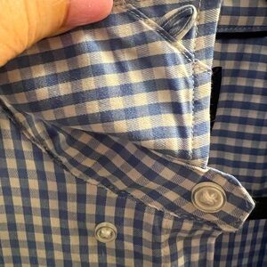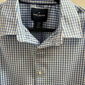 DANIEL HECHTER SHIRT, Menโs Size M, Blue & White Check Short Sleeve Button Down.