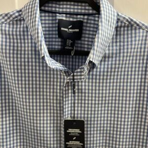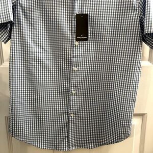 DANIEL HECHTER PARIS SHIRT, Menโs Size Medium, Blue and White Checkered (Gingham) Short Sleeve Button Down Shirt with Stretch and a Shirttail Hem. NEW with Tags. PERFECT FOR GIFT GIVING ๐