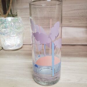 Add some tropical vibes to your home bar with this set of four vintage highball glasses. Featuring a fun novelty pattern with sail boats and palm trees, these glasses are perfect for all occasions. The round shape and 8 oz capacity make them comfortable to hold and perfect for both tall and short drinks.