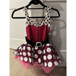 A Wish Come True Dance Costume Girl Child Medium Girls Pink Polka Dot Bow