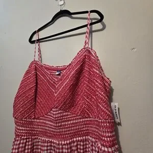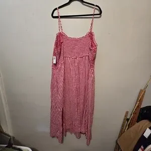 Old Navy NWT Red Gingham Sun Dress 4X Red White Smocked Cottagecore Boho Summer