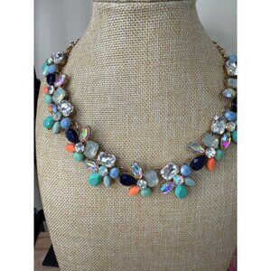 J. Crew Statement Necklace With Colorful Floral Crystal Design & Gold-Tone Chain