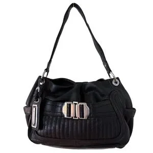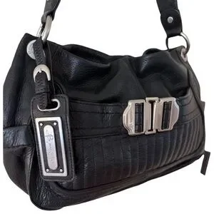 Y2K B. Makowsky Black Leather Silver Buckle Tote Shoulder Bag