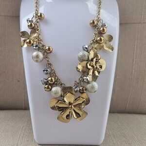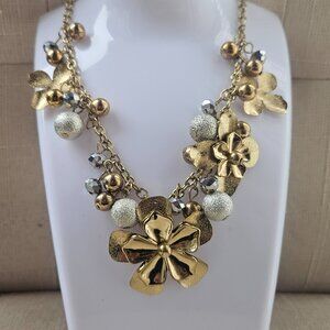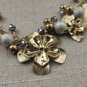 Bold Element Women Necklace Gold Tone Blossom Flower Statement Necklace