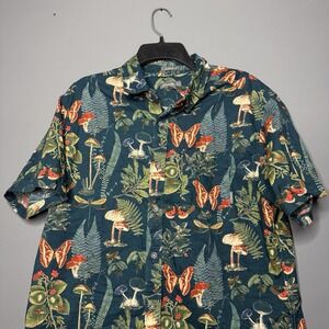 Eddie Bauer Shirt Mens Large Green Mushroom Nature Classic Fit Cotton Hawaiian