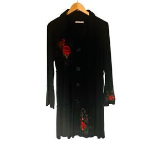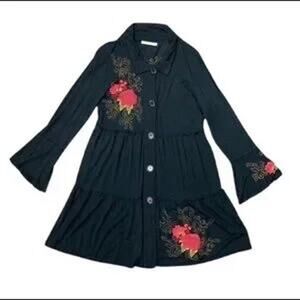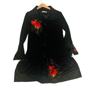 Caite Floral Embroidered Button Front Long Sleeve Dress Size S Small Black Multi