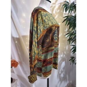 Vtg Carole Little 90s Boho Aztec Southwestern Top Size 10P Artsy Hippie Floral