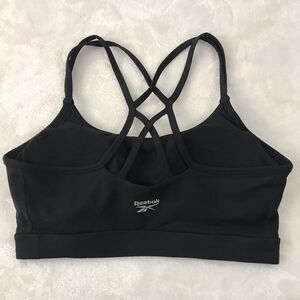 Reebok Women's L Strappy Criss Cross Sports Bra Solid Black Basic Gym Workout