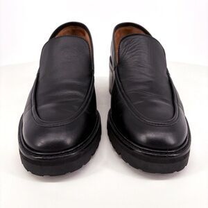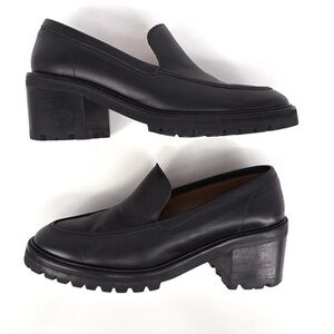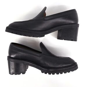 FLATTERED | Saga Black Leather Chunk Lug Sole Heeled Loafers | Sz 10