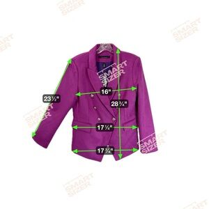 Stunning fuchsia WHBM Studio Blazer in a soft velvet finish. Features a flattering tailored silhouette with elegant double-breasted silver embossed buttons and full lining. Perfect for work, dinner, or any special event — adds a bold, feminine statement to any outfit.