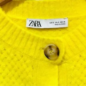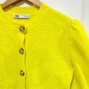 ZARA Bright Yellow Crop Cardigan Neon Retro Feminine Romantic Y2K 90s Size S