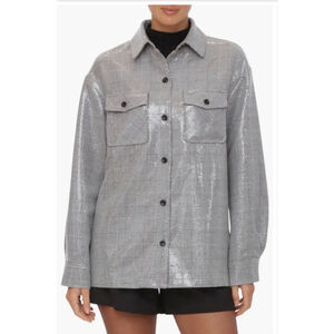 Bagatelle Sequin Plaid Shacket Jacket Medium Gray NWT
