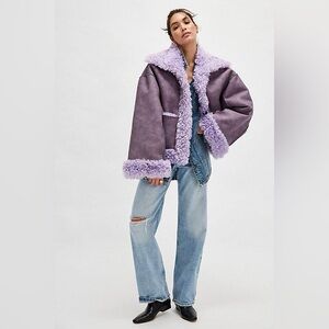 Free People Kiki Oversized Sherpa Jacket in Lilac