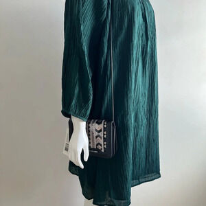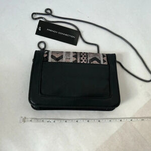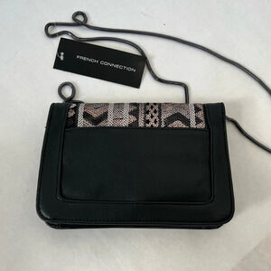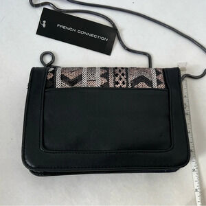 French Connection Chain Sequins Black Silver Crossbody Bag Clutch Purse