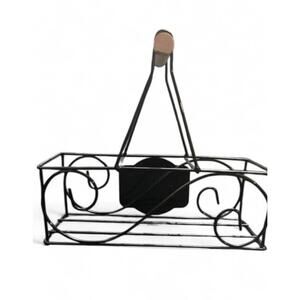 Cocoa Bar Black Metal Basket 9x3x8 Wood Handle Hot Chocolate Organizer Decor