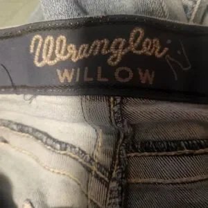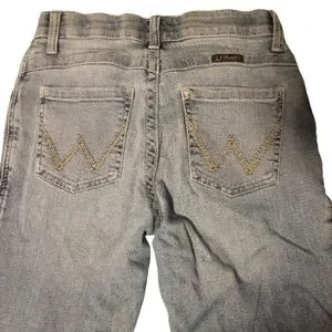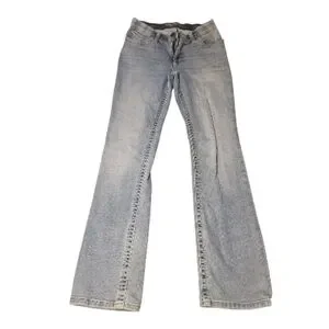Stylish boot cut jeans by Wrangler. Light blue shade. Perfect for casual wear.