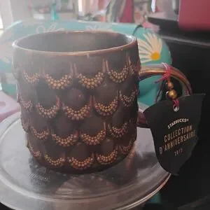 This rich brown and copper siren-scale mug has never been used and includes all it's original tags. Perfect for the Starbucks collectors! Bought while I worked there and displayed since. The dark, patina-like colouring gives it a real artsy feel.