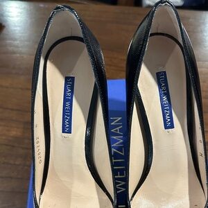 Stuart Weitzman Laney 95 Black Caviar Patent Leather Heels