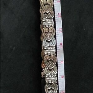 Elegant Brighton belt with intricate silver detailing. Features a black leather strap and ornate silver buckle.