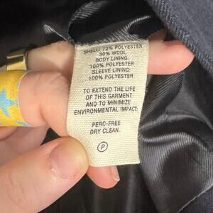 Material: Shell is 70% polyester and 30% wool. Body and sleeve lining is 100% polyester.
