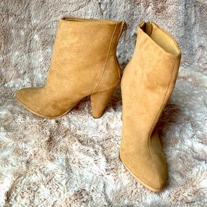 Forever 21 Women's Tan Suede Ankle Booties Heels Shoes Size 8