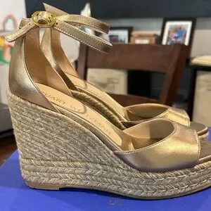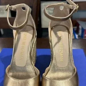Stuart Weitzman Nudist Curve Espadrille Metallic Gold Wedge Sandals