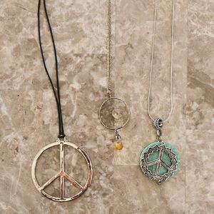 Embrace peace and style with this elegant necklace set. Featuring gold, silver, and turquoise pendants, these necklaces are perfect for any occasion. lot of 3.