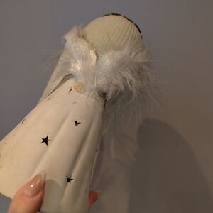 Charming cream angel figurine with delicate star cutouts and feathered wings. Perfect for decor. lights up but untested