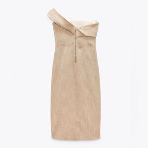NWT • Zara Asymmetrical Slip MIDI Taupe Dress • XS