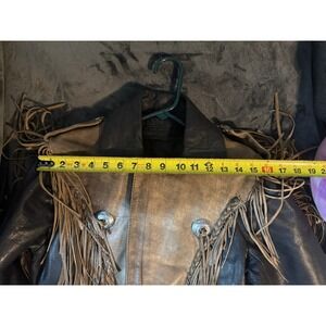 Vintage UNIK Leather Collections Fringed Concho Motorcycle Jacket Brown Black 36