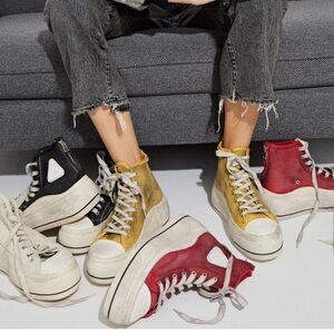 R13 Platform High Top Sneaker Black Canvas Distressed Lace-Up Zip Back – Size 8