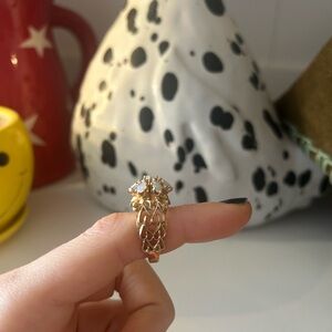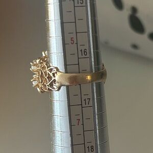 This elegant gold floral ring features a delicate design perfect for any occasion. Its intricate craftsmanship adds a touch of sophistication to your jewelry collection.