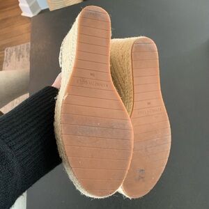 Kenneth Cole NY Olivia T Strap Espadrille Wedge Sandal Ice Leather