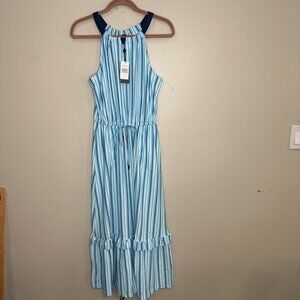 Cabana Life Nautical Tie Waist Maxi Dress Size Small Blue Stripe NWT Beach