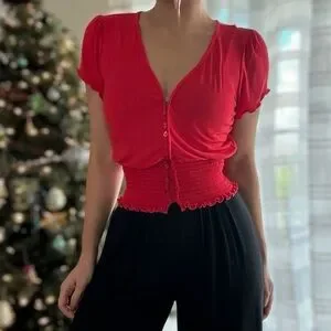 Style: Ruffled smocked crop top with front buttons