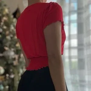 Y2K top, Guess crop top, smocked ruffle top, stretchy red top, vintage-inspired fashion, cute and feminine crop top