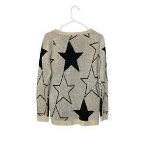 Grifflin Paris Wool Blend Sequin & Stars Black Gold Sweater Ribbed Trim Sz L
