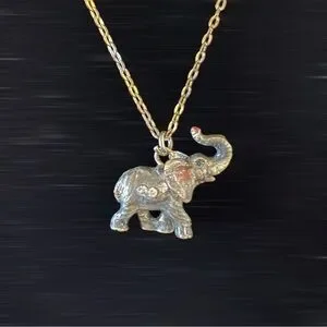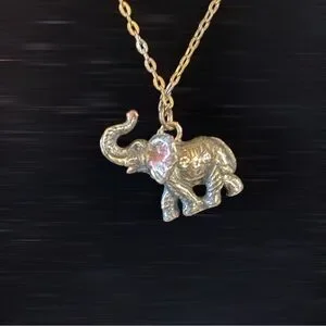 pewter elephant necklace pendant with gemstone eyes in motion