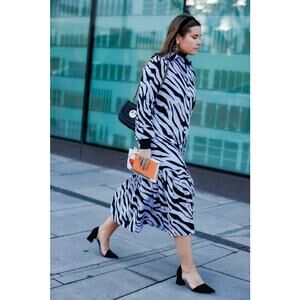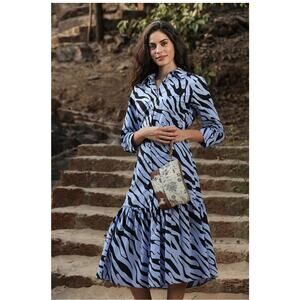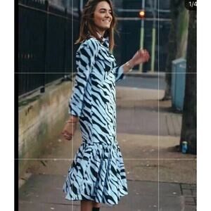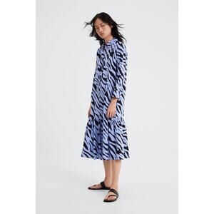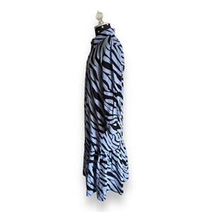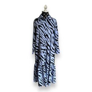 Zara Womens Dress Sz M Powder Blue Black Zebra Animal Print Shirt Long
