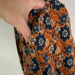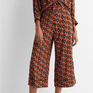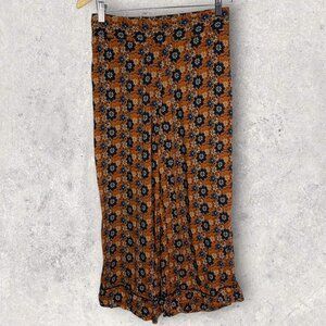NEW Smythe Printed Wide Leg Cropped Pants Batik Floral Size XS Rust Floral Boho